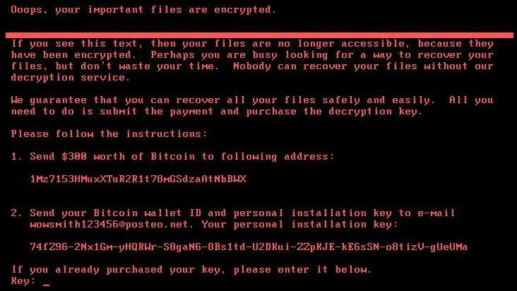 Ransomware is a type of malware that prevents or limits users from accessing their system, either by locking the system's screen or by locking the users' files unless a ransom is paid. More modern ransomware families, encrypt certain file types on infected systems and forces users to pay the ransom through certain online payment methods to get a decrypt key.